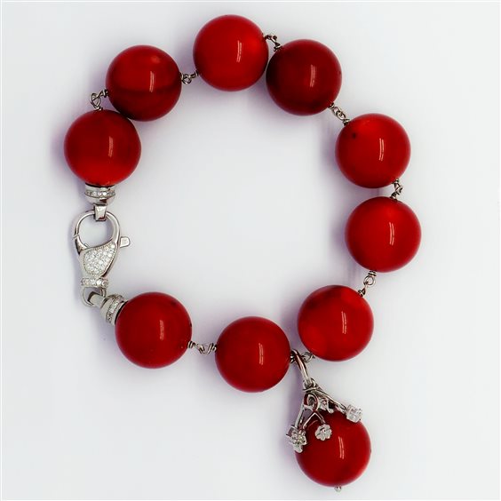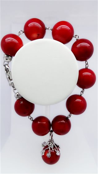 Bracciale artigianale in argento 925 e corallo bambù. Lunghezza: 24cm. Diametro corallo: 17mm.