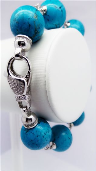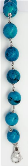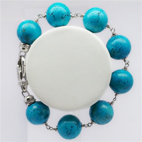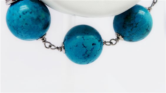 Bracciale artigianale da donna in argento e pasta turchese. Diametro pietre: 14mm.
