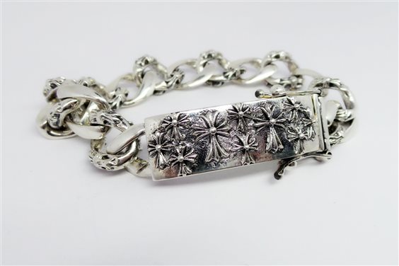 Bracciale Dark artigianale in argento. Chiusura a farfalla.