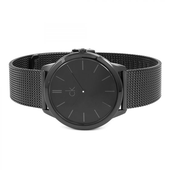 orologio in acciaio diametro 40mm trattato pvd nero, total black quadrante nero, cinturino maglia milanese a tessuto con chiusura a scatto , movimento quartz, vetro minerale, water resistant 3 atm