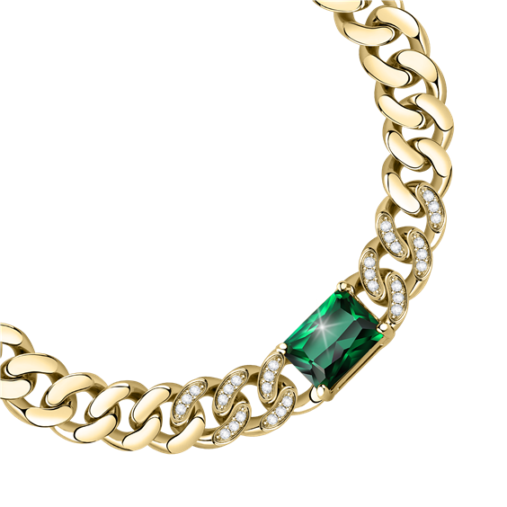 Bracciale Chain Gold con zirconi bianchi e verde 17+2,5cm