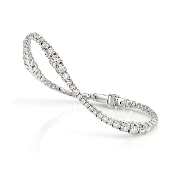 Bracciale tennis in oro bianco e diamanti taglio brillante decrescenti progressivamente. G - VS/SI Diamanti ct. 5,00