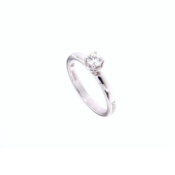 Anello solitario della collezione MINOU in oro bianco e diamanti. (diamanti ct. 0.25 color G purezza VS)