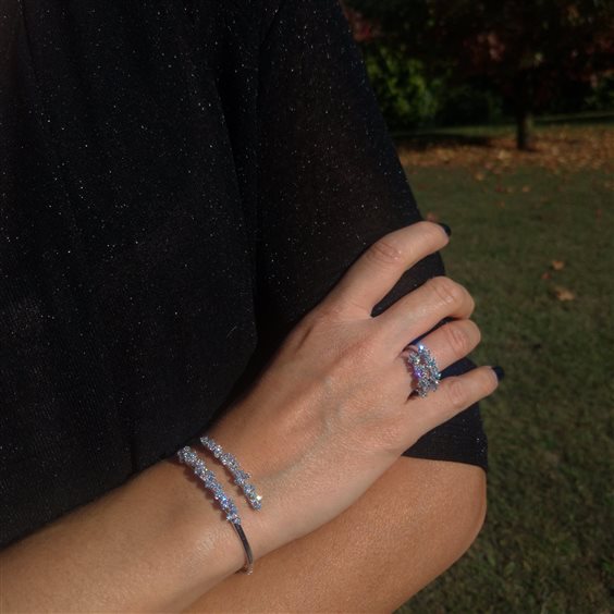 Bracciale della collezione Mimosa flexi in oro bianco e diamanti con caratura 2,02 di colore GH.