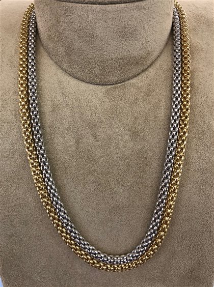 COLLANA FOPE FORMATA DA DUE COLLANE UNITE INSIEME, UNA IN ORO BIANCO E UNA IN ORO GIALLO.