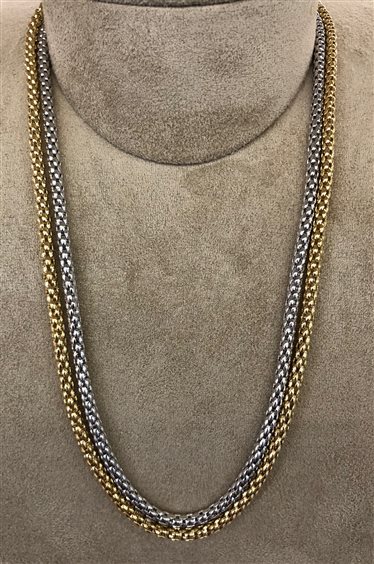 COLLANA FOPE FORMATA DA DUE COLLANE UNITE INSIEME, UNA IN ORO BIANCO E UNA IN ORO GIALLO.
