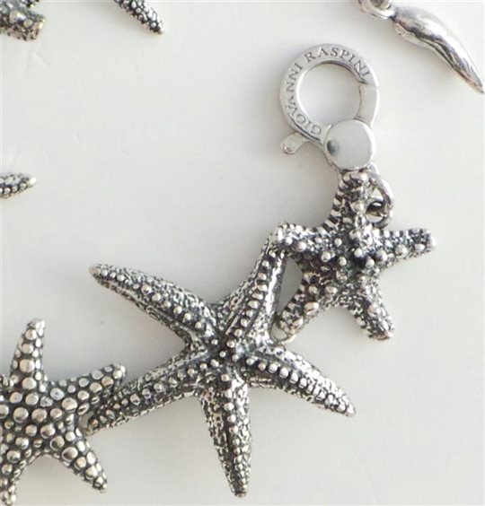 bracciale starfish tutto in argento con chiusura a moschettone personalizzata, e catena allungabile