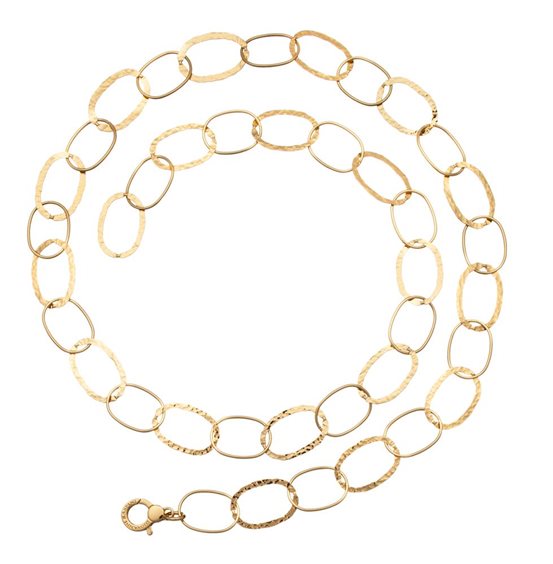 colllana in argento laminato oro, chiusura a moschettone personalizzato, lunghezza totale cm 92, possibilità di fare doppio giro