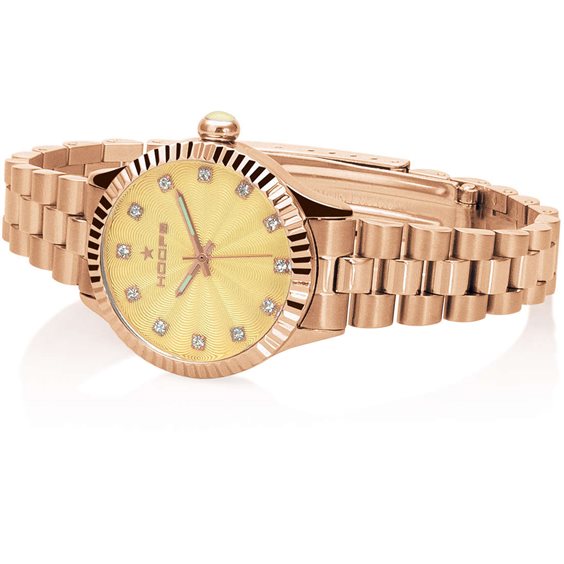 OROLOGIO DA DONNA HOOPS LUXURY ROSE GOLD DIAMONDS. CINTURINO IN ACCIAIO COLOR ROSA E QUADRANTE ROTONDO COLO ORO GIALLO.