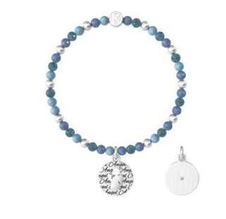 Bracciale in acciaio 316L con agata azzurra, lunghezza regolabile, circonferenza 20 cm e Ø 6 cm. Dimensioni: sfere Ø 6 mm