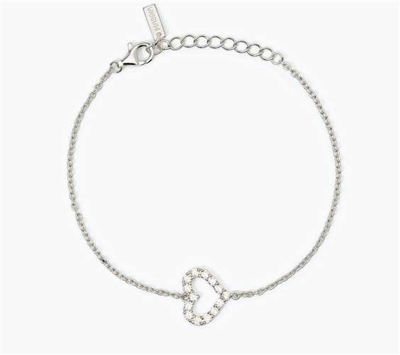 Bracciale in argento 925/°°° rodiato con catena forzatina 1.5 mm ed elemento centrale cuore 11.5x13.5 mm con zirconi Ø 2 mm, lunghezza regolabile da 16 a 19 cm