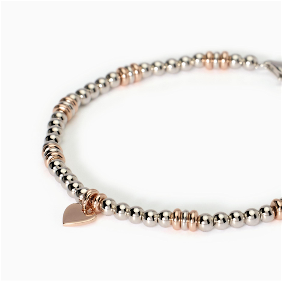 Bracciale regolabile da donna in argento rodiato e placcato oro rosa 18K con ciondolo centrale a forma di cuore. • Dimensione del cuore: 6 x 6 mm • Misura regolabile, lunghezza da 16 a 19 cm • Chiusura con moschettone • Materiale: Argento 925, Zirconi • Finitura: Placcatura in oro rosa 18k