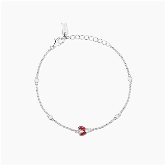 Bracciale in argento 925/°°° rodiato con catena forzatina 2 mm, elemento coccinella smaltata 8x6.5 mm e zirconi Ø 2 mm, lunghezza regolabile da 15.5 a 18.5 cm