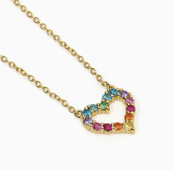 Girocollo regolabile da donna in argento placcato oro 18K con catena forzatina e ciondolo cuore con zirconi multicolor e tormaline sintetiche rosa. • Larghezza della catena forzatina: 1 mm • Dimensione cuore: 14 x 12 mm • Diametro pietre: 2 mm • Misura regolabile, lunghezza da 38 a 42 cm • Materiale: Argento 925, Zirconi, tormalina sintetica • Finitura: Placcatura in oro 18k