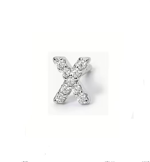 Orecchino argento 925/°°° rodiato con lettera X e zirconi bianchi Ø 1.25 mm