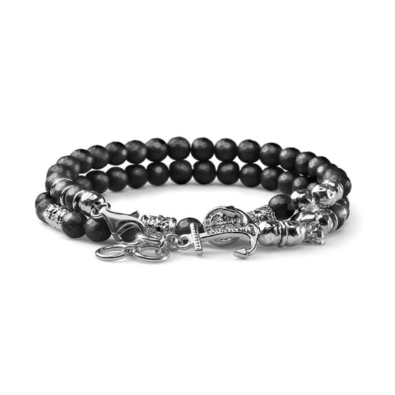 GIOIELLI UOMO BRACCIALE SAINT DUE GIRI LIMITED EDITION MADE IN ITALY Bracciale due giri UOMO in Argento 925‰ Misura cm. 39+3 chiusura moschettone Agata nera mm. 6 Limited edition Interamente realizzato a mano Made in Italy Disegnato per Mariacristinasterling da Alessandro Magrino