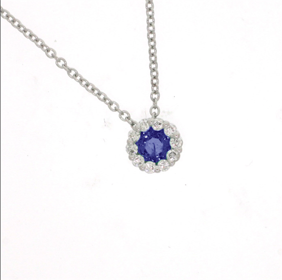 Collana Salvini con zaffiro centrale circondato da diamanti (ct. 0.13, colore H).