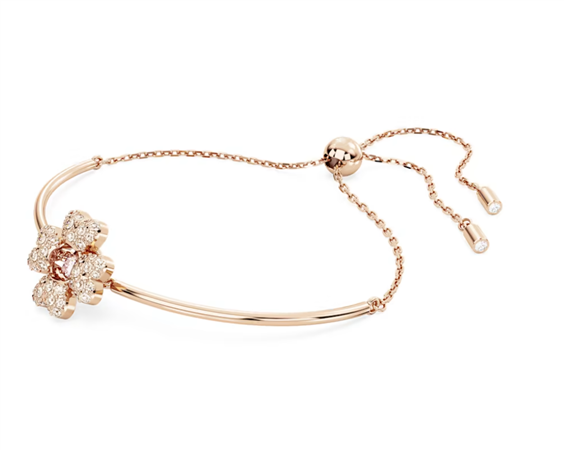 Questo splendido bracciale della famiglia Idyllia aggiungerà un tocco di lusso a qualsiasi look. Disposto su una catena con chiusura regolabile, il design placcato color oro rosa presenta un motivo portafortuna a quadrifoglio, realizzato con uno Swarovski Zirconia centrale rosa e quattro foglie decorate da un pavé di cristalli Cry. Indossalo con un paio di orecchini a quadrifoglio Idyllia per un look ispirato alla natura.