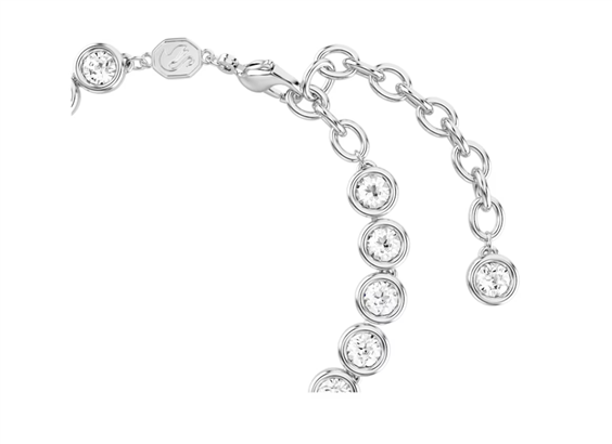 Realizzato con un mix classico di tonalità soffuse, questo bracciale Imber Tennis è la scelta ideale per un tocco di intramontabile raffinatezza. Il design placcato rodio presenta un filo completo di cristalli taglio Round con montatura a castone bombata ed è completato da una chiusura con gancio a moschettone. Un modo ideale per esaltare il tuo styling casual o per elevare un look da sera. Immagini a scopo illustrativo.