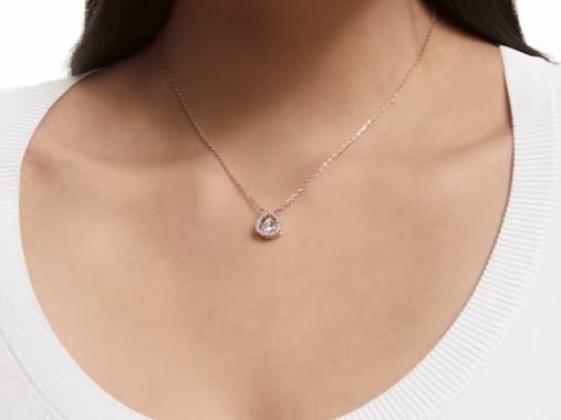 Questa collana senza tempo regalerà un tocco di meraviglia al tuo guardaroba di tutti i giorni. Sospesa ad una catena placcata color oro rosa, presenta al centro una bellissima pietra taglio Trilliant incorniciata da uno sfavillante pavé. Un gioiello che non passerà mai di moda. Lunghezza: 38 cm Dimensione pendente: 1 x 1.1 cm Materiale: Placcato color oro rosa, Cristalli, Zirconio Tipo di fermaglio: Moschettone.