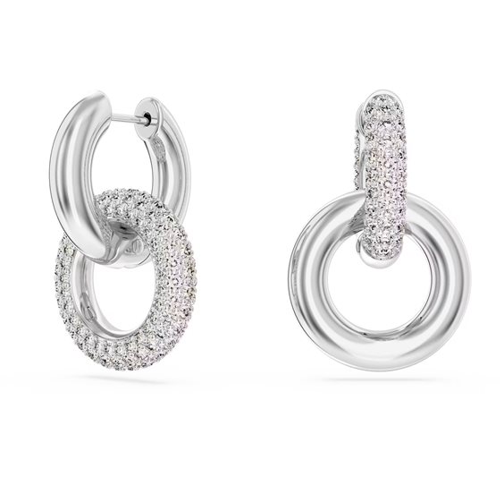 Questi orecchini a cerchio intrecciati della famiglia Dextera presentano due anelli tubolari placcati rodio, di cui uno impreziosito da pavé all-over. Per un ulteriore tocco asimmetrico, gli anelli sono disposti in modo diverso su ciascun gioiello. Inoltre, è anche possibile rimuovere il secondo cerchio per uno stile a cerchio singolo che offre una maggiore versatilità. Articolo nr.: 5671807 Collezione: Dextera Dimensione: 2.7 x 1.8 cm Materiale: Cristalli, Placcatura rodio Colore: Bianco Peso (singolo oggetto): 7.9 g