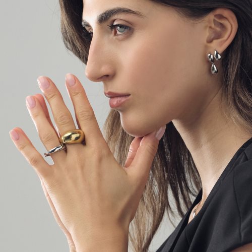 Orecchini mini goccia Orecchini cerchietto a forma di goccia in argento, diametro 1,00 cm. Il design bombato di questi graziosi cerchietti celebra un'eleganza scultorea ispirata ai mitici anni '80. La linea morbida e sinuosa avvolge il lobo con sensualità discreta, ma d'impatto. Il gioco di curve e volumi cattura la luce e diventa assoluto protagonista. Scopri il carattere deciso della nuova collezione Bold ed esalta ogni tuo look.